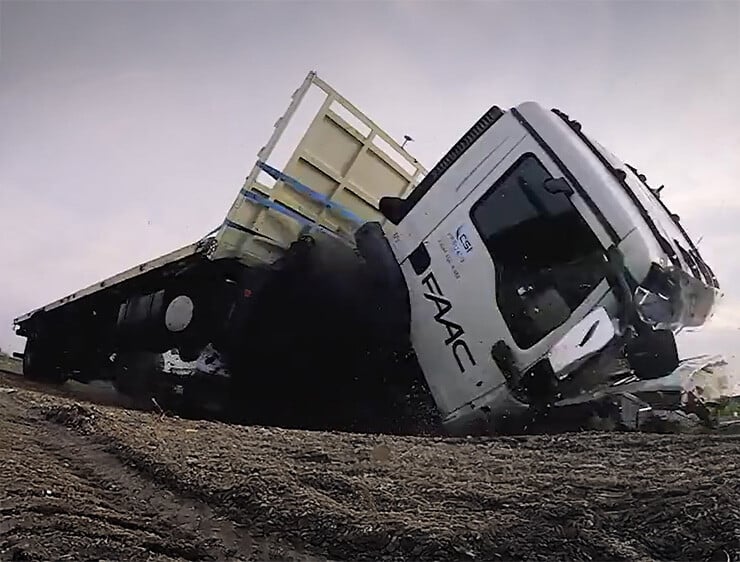 Crashtests mit Bravour bestanden. JS-Poller sind zertifiziert, um einen 7.500 kg schweren LKW bei einer Geschwindigkeit von 50 km/h (JS48) und 80 km/h (JS80) anzuhalten.