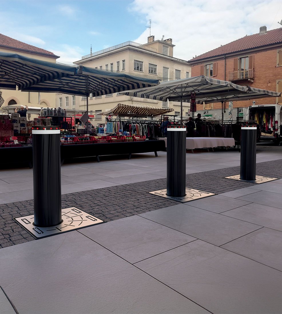 Die Poller der FAAC JS-Serie wurden entwickelt, um die Sicherheit aller Bereiche zu maximieren, die durch Fahrzeuge und motorisierte Fahrzeuge gefährdet sein können, wie z. B. sensible Gebäude, Plätze, Fußgängerzonen und belebte Orte.