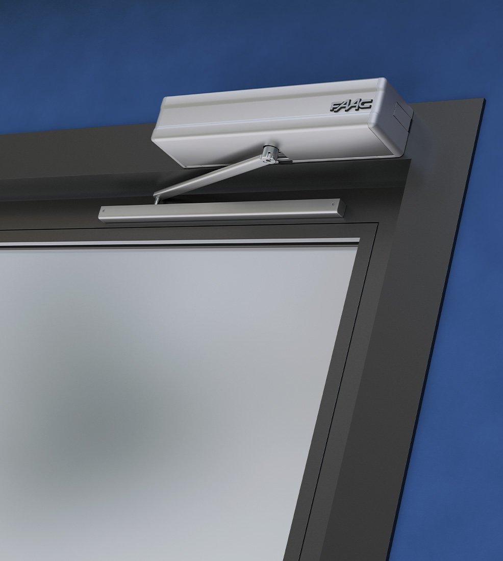 Die FAAC 950N2 Antriebe (mit Feder-Schließsystem) können sowohl am Türsturz als auch direkt an der Türstruktur installiert werden. Die innovativ gestaltete Abdeckung des Gehäuses kann in eloxiertem stranggepresstem Aluminium oder in geformtem ABS geliefert werden.