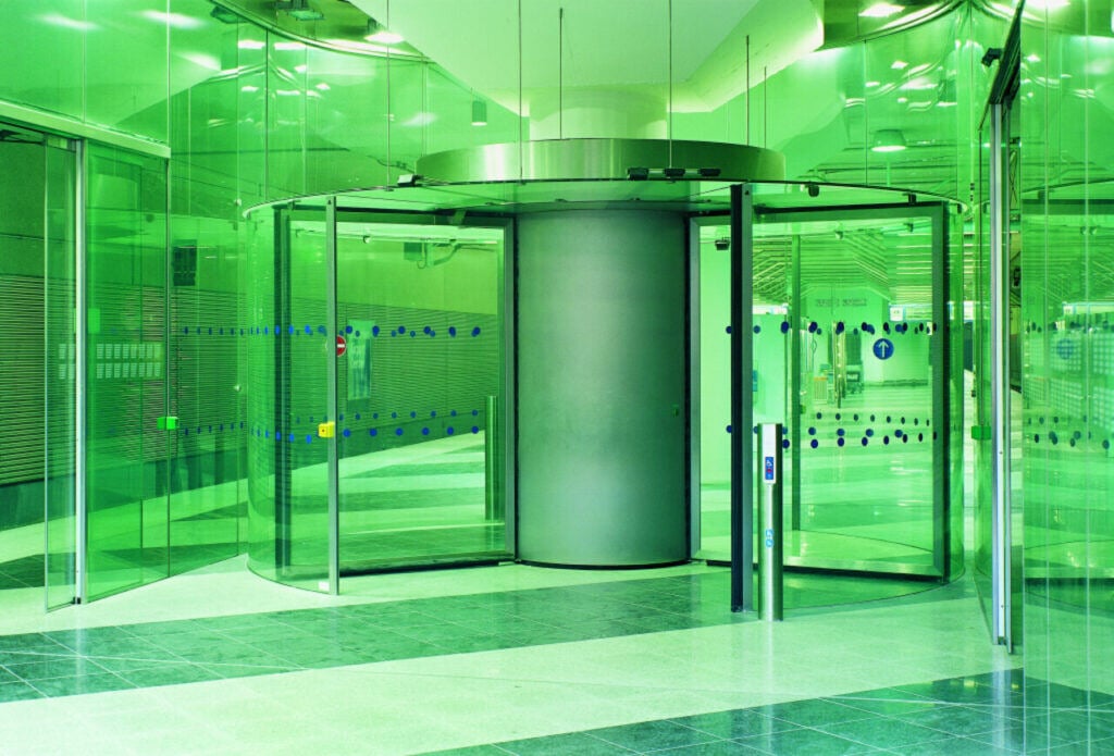 Wir sind mit vielen verschiedenen Türen in München vertreten. Die ungewöhnlichste ist die gezeigte dreiflügelige Karusselltür, die um eine Betonsäule herum gebaut wurde.